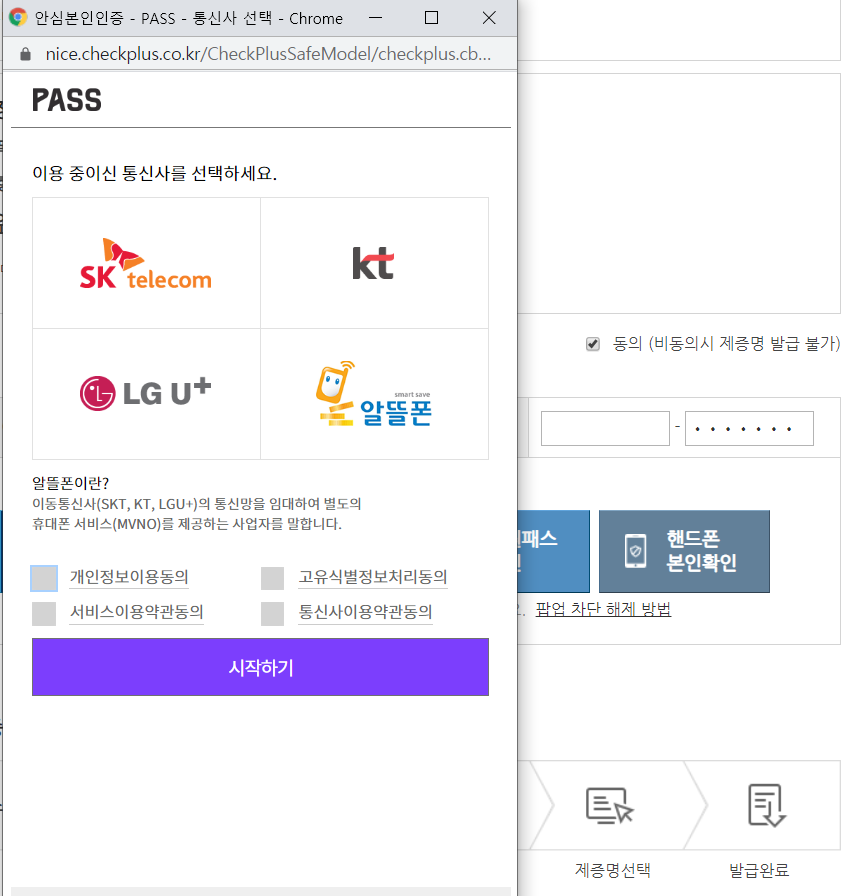 저는 핸드폰 본인확인 방법으로 진행해봤습니다.