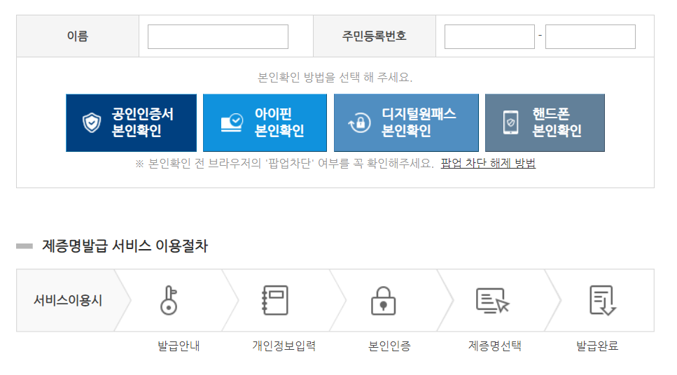 공인인증서 본인확인 / 아이핀 본인확인 / 디지털원패스 본인확인 / 핸드폰 본인확인