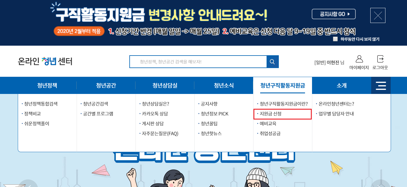 청년구직활동지원금 신청방법