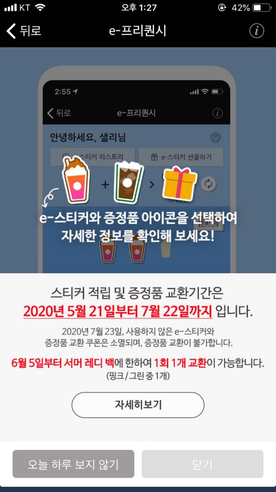 제조 음료 구매 시 e 프리퀀시 스티커 적립이 됩니다.