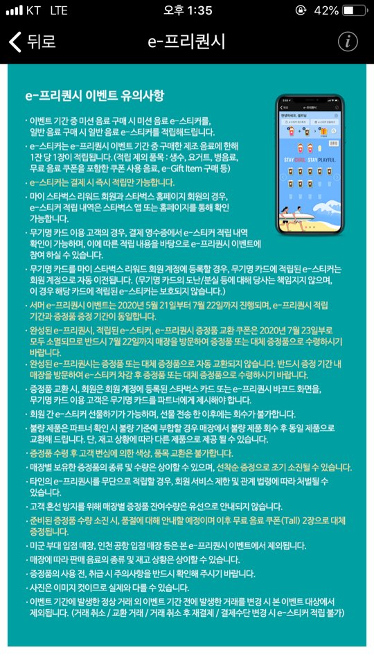 제조 음료 구매 시 e 프리퀀시 스티커 적립이 됩니다.