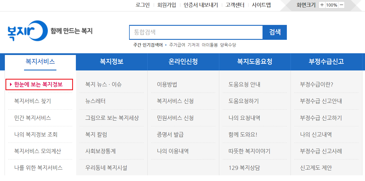 신청단계로 넘어가서 모르시면 복지로 고객센터 129 전화번호로 연락하시면 자세한 신청방법에 대해서 확인이 가능합니다.