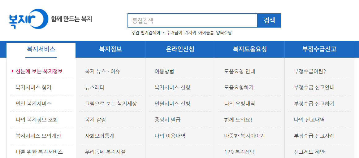 2. 복지로 사이트 내 "한눈에 보는 복지정보" 를 클릭해주세요