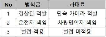 1. 과태료 - 무인 단속 카메라에 적발되어 실제 차량 운전자에 대해서 구분이 어렵기 때문에 차량 명의자에게 과태료의 책임이 있습니다.