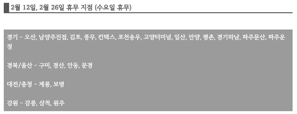 그래서 오늘은 2월 홈플러스 휴무일에 대해서 알아보겠습니다.