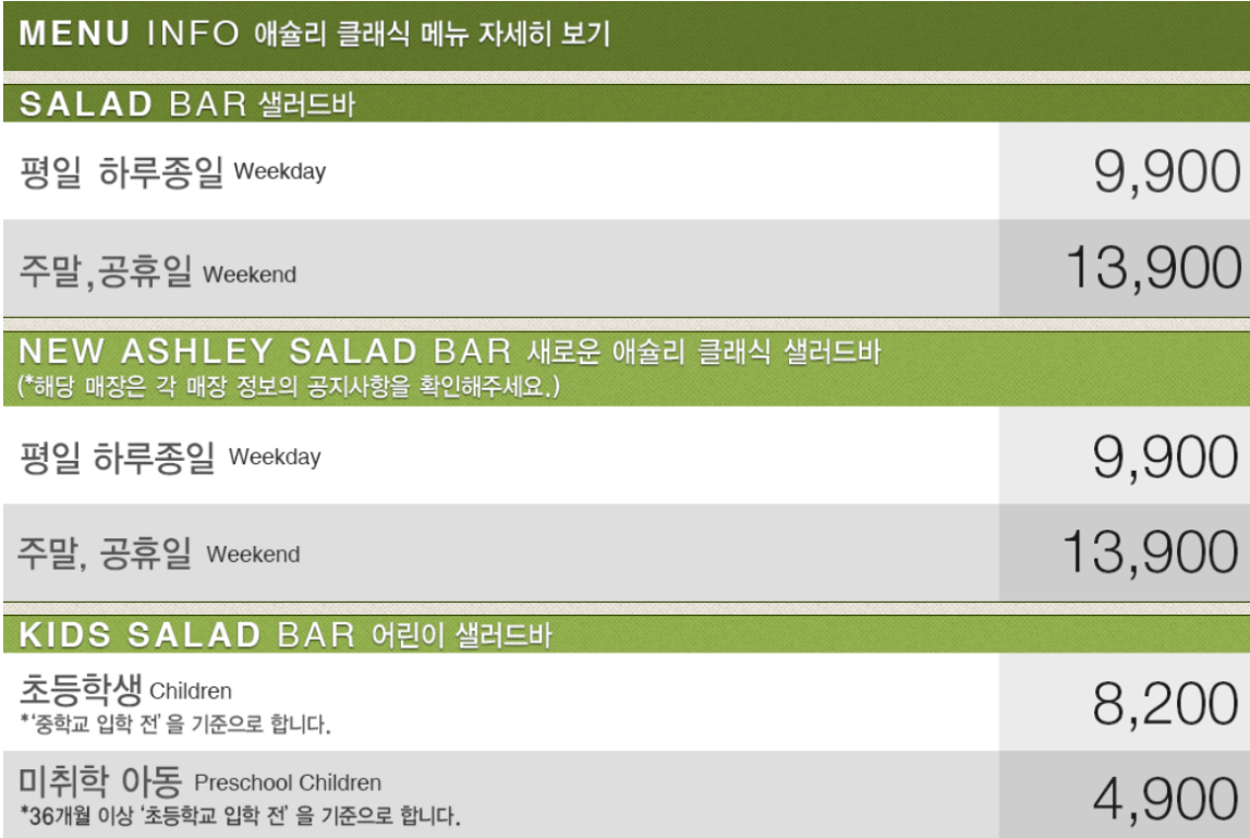 지금까지 애슐리 샐러드바 가격 할인카드 및 매장에 대해서 안내드렸습니다.