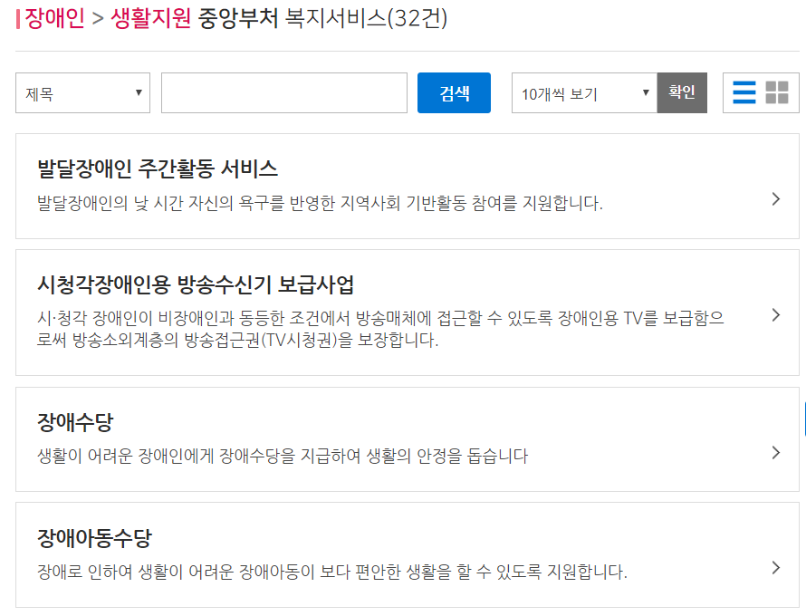- 아래 생활지원에 대한 내용이 보이시나요? 추가적으로 상세내용도 확인가능합니다.