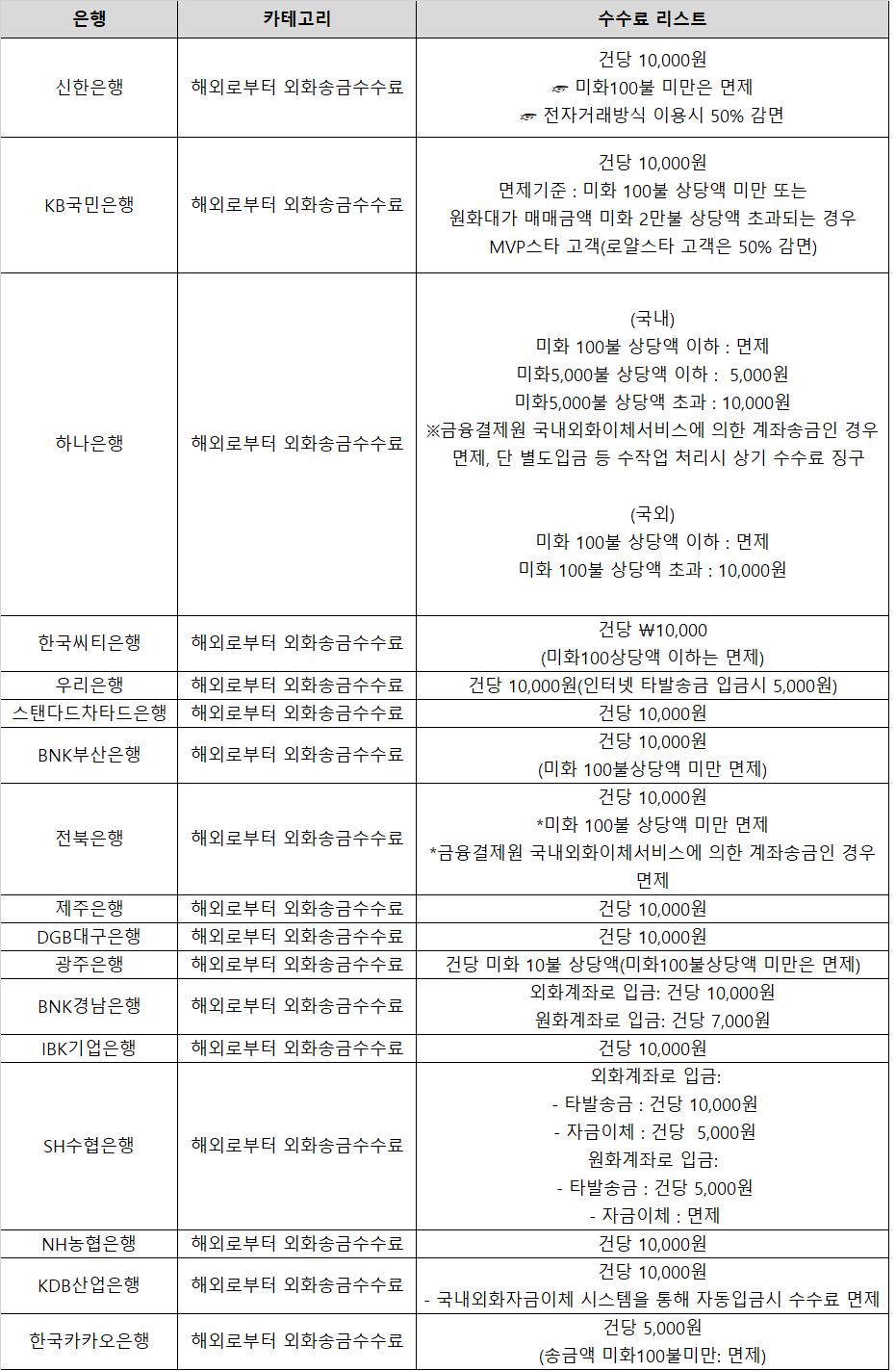 - 국내외화자금이체 시스템을 통해 자동입금시 수수료 면제