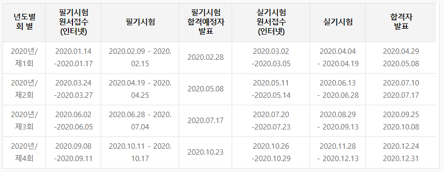 지금까지 큐넷 2020년 시험 일정에 대해서 알아봤습니다.