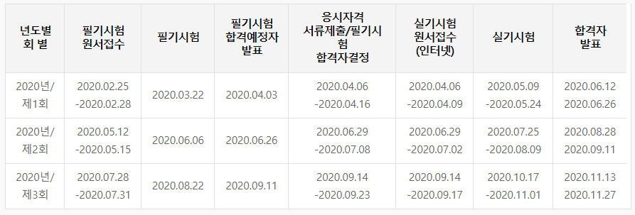 지금까지 큐넷 2020년 시험 일정에 대해서 알아봤습니다.