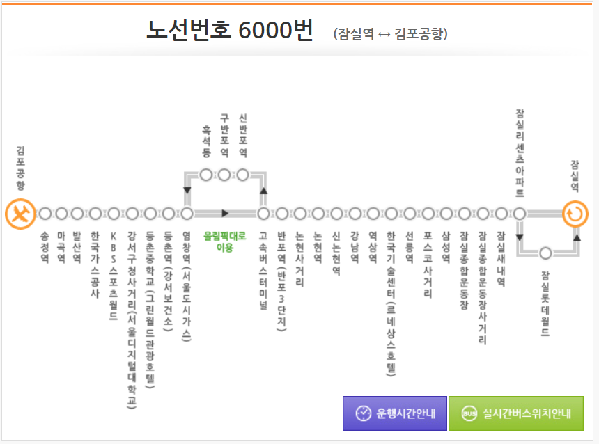 | 6000번 김포공항버스 시간표 및 노선도 |