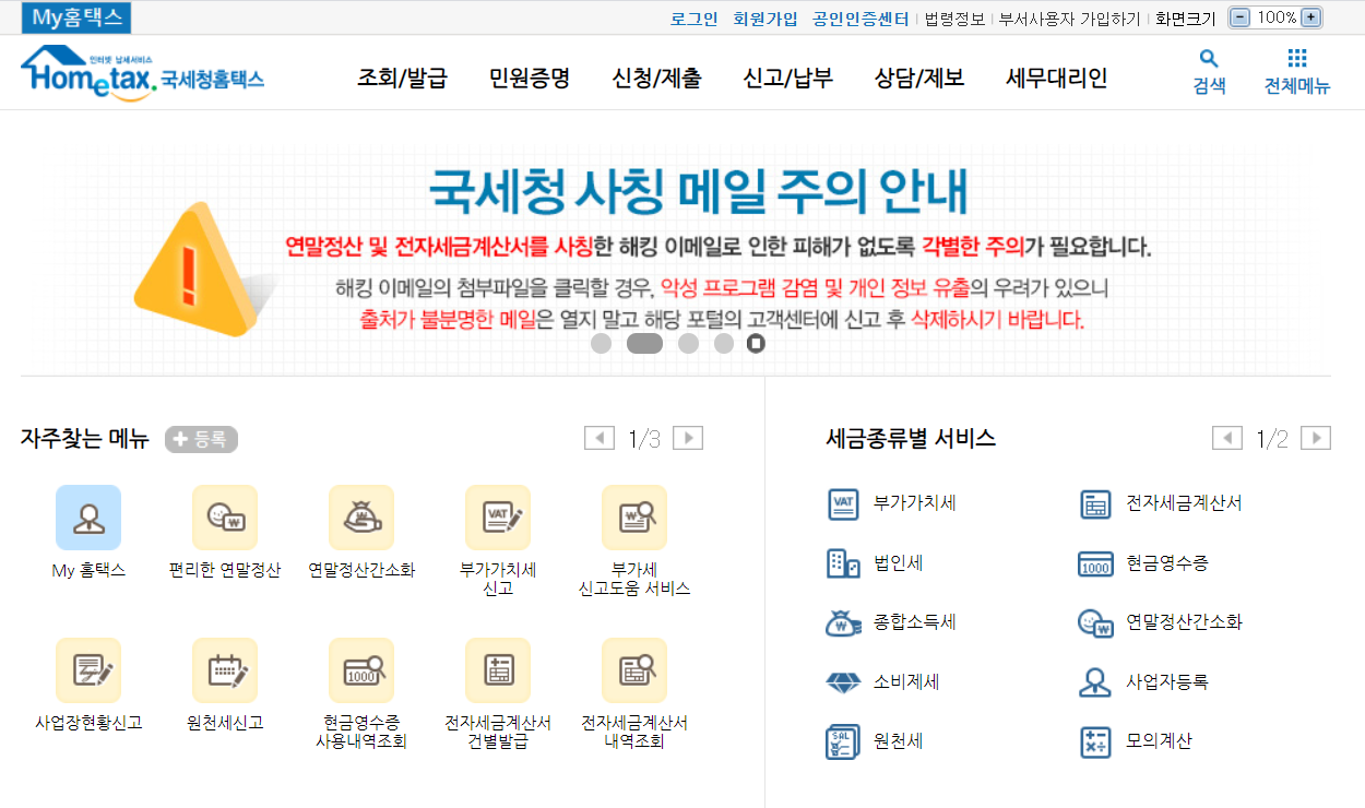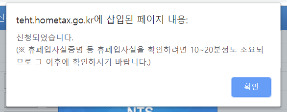 세무서에 방문을 안하더라도 인터넷에서 1분이면 신청이 가능합니다.