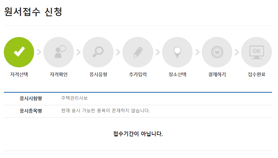 접수기간에 접속을 하셔서 항목에 맞게 선택하시고 접수만 진행하시면 됩니다.