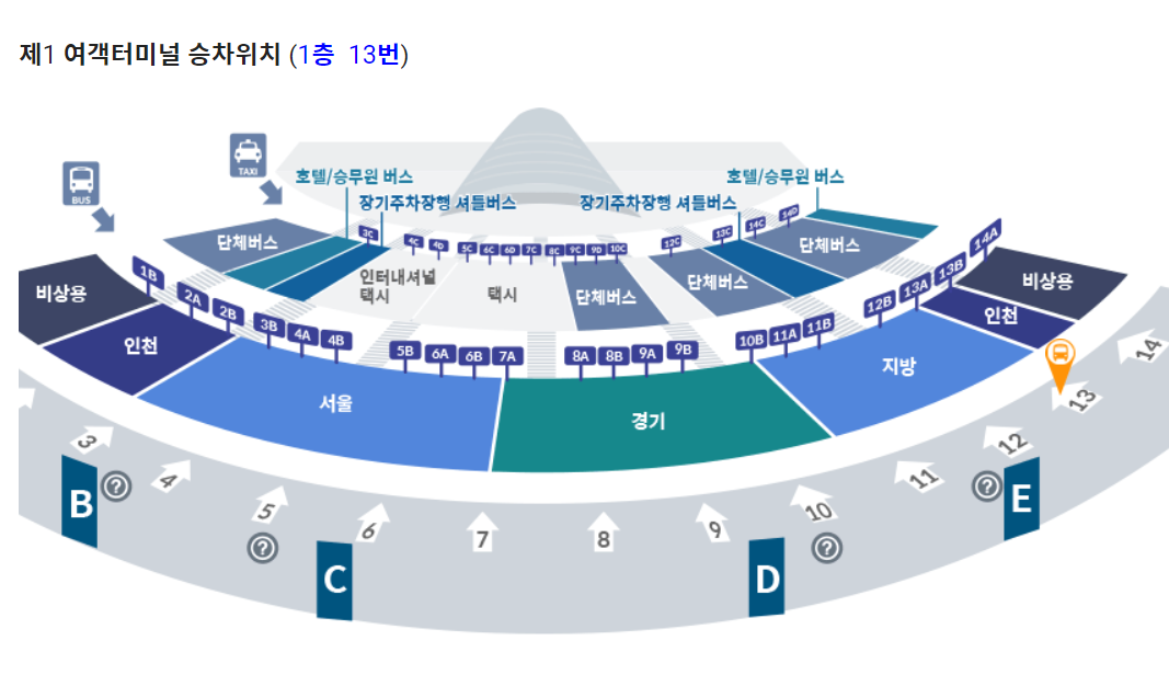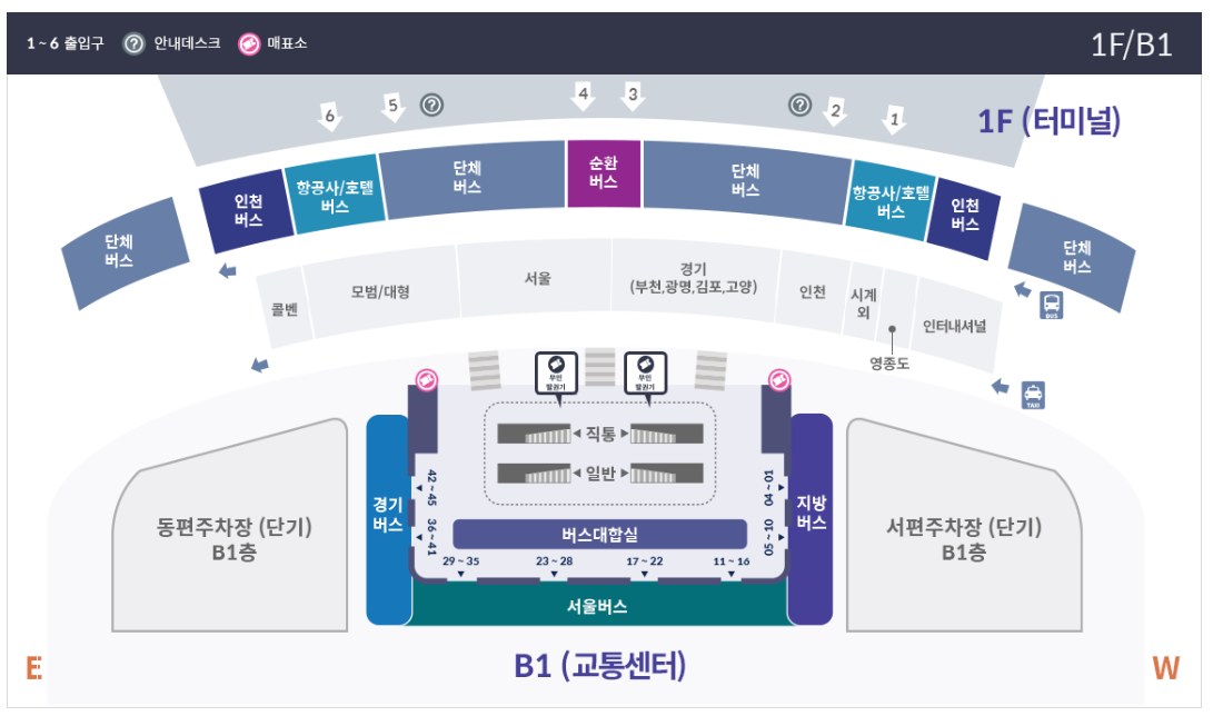 제 1여객 터미널 버스 정류장 위치