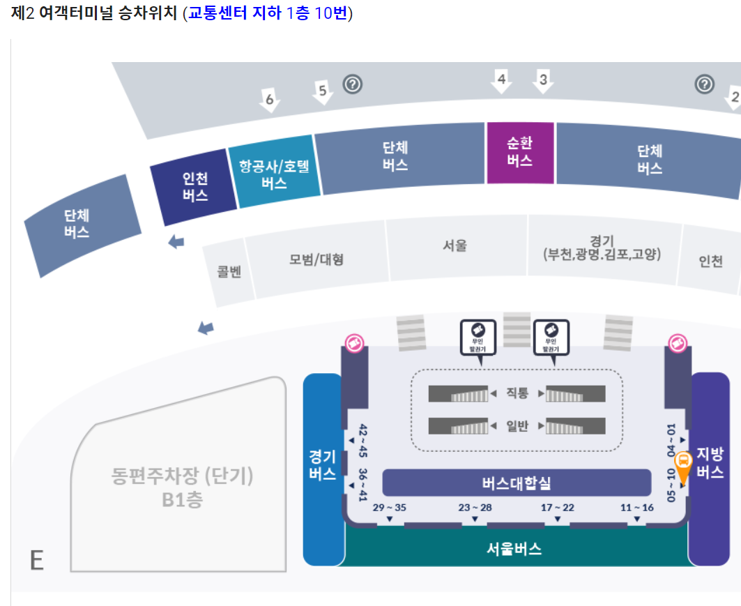 제 2여객 터미널 버스 정류장 위치