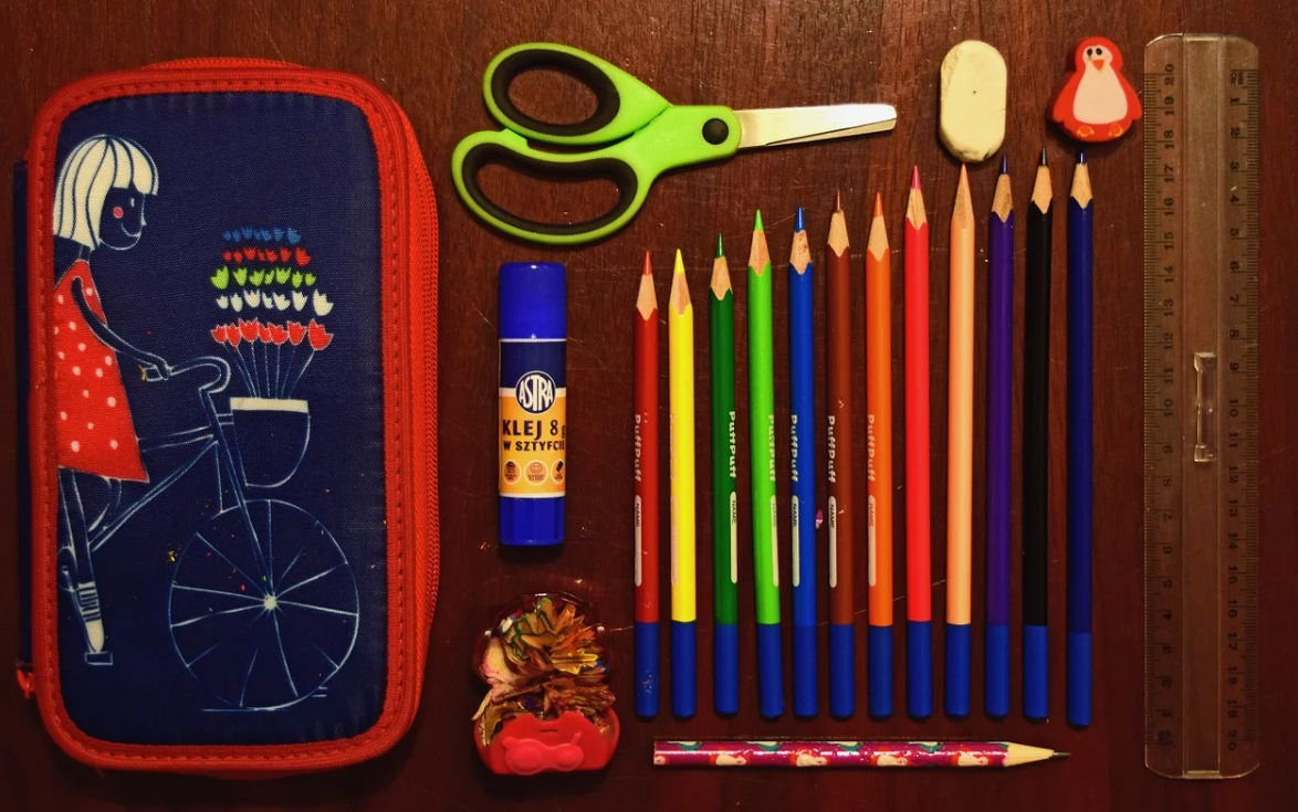 연필, 지우개, 풀, 가위,칼, 자 등등 한 곳에 담을 수 있는 필통이 있으면 관리하기에도 쉽고