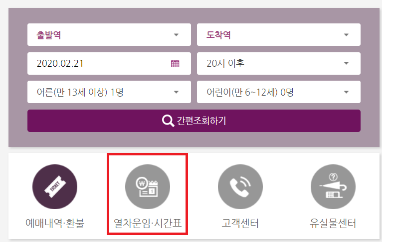 5. 열차 시간표 열람 시 아래 내용에 대해서 확인이 가능합니다.